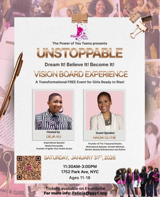 We would like to Thank our PowerGirls, Moms and Special Guests for attending our 5th Annual Vision Board Party with Media Personality Deja Vu on January 25! Our Sincere Thanks to Everyone who made our Event